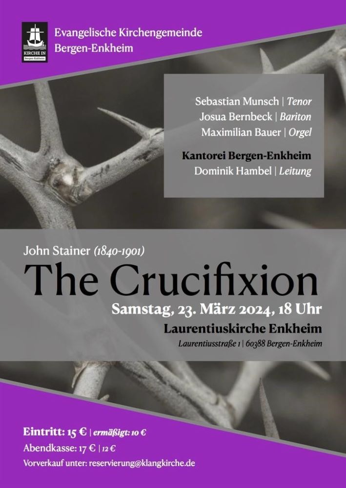 Hiermit laden wir herzlich zum Antrittskonzert unseres neuen Kirchenmusikers Dominik Hambel ein. Am Samstag, den 23. März 2024 wird um 18 Uhr in der Laurentiuskirche das Passionsoratorium „The Crucifixion“ aufgeführt.