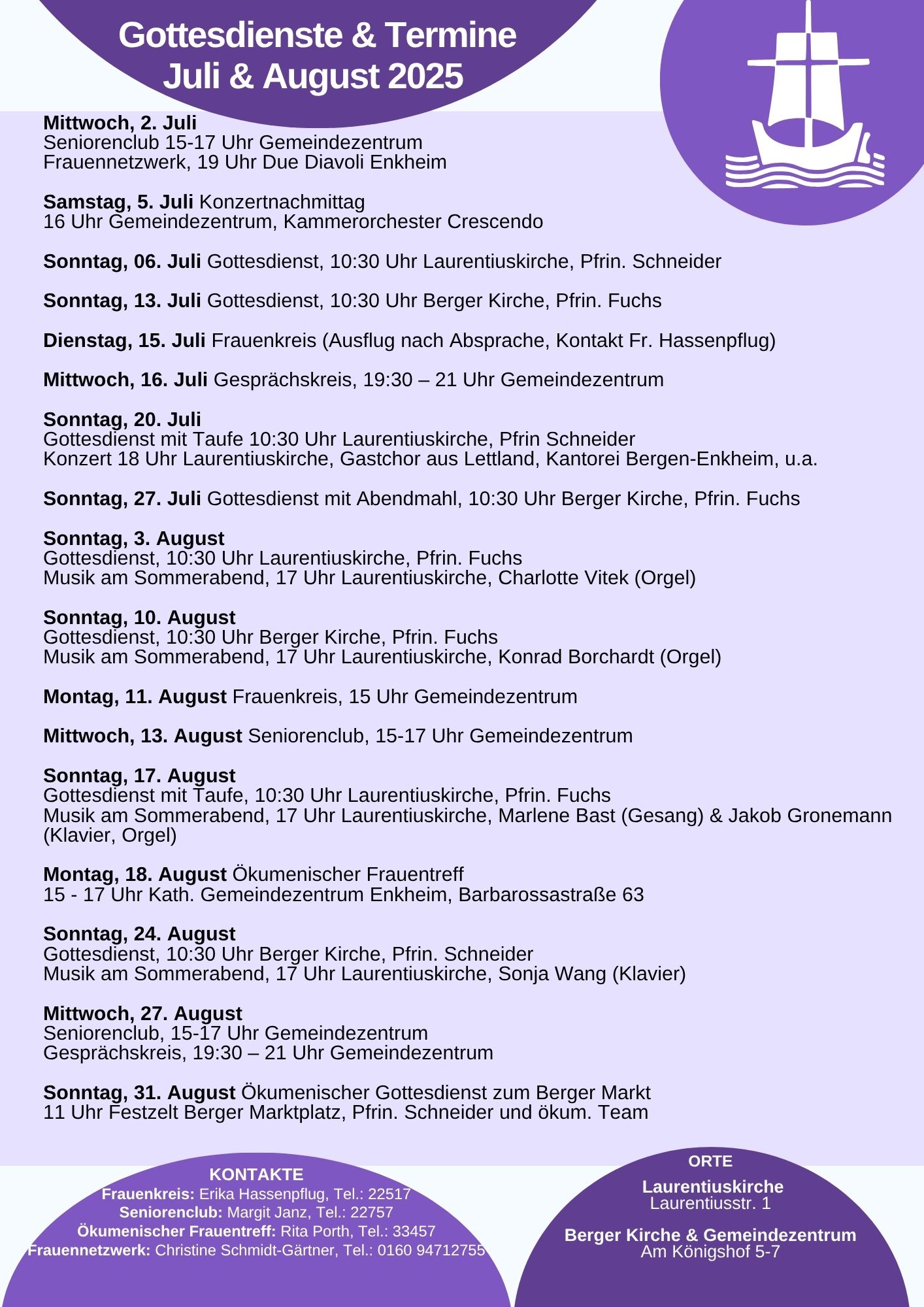 Am Sonntag, den 20. Juli laden wir um 18 Uhr zum Chorkonzert in die Enkheimer Laurentiuskirche (Laurentiusstraße 1) ein.