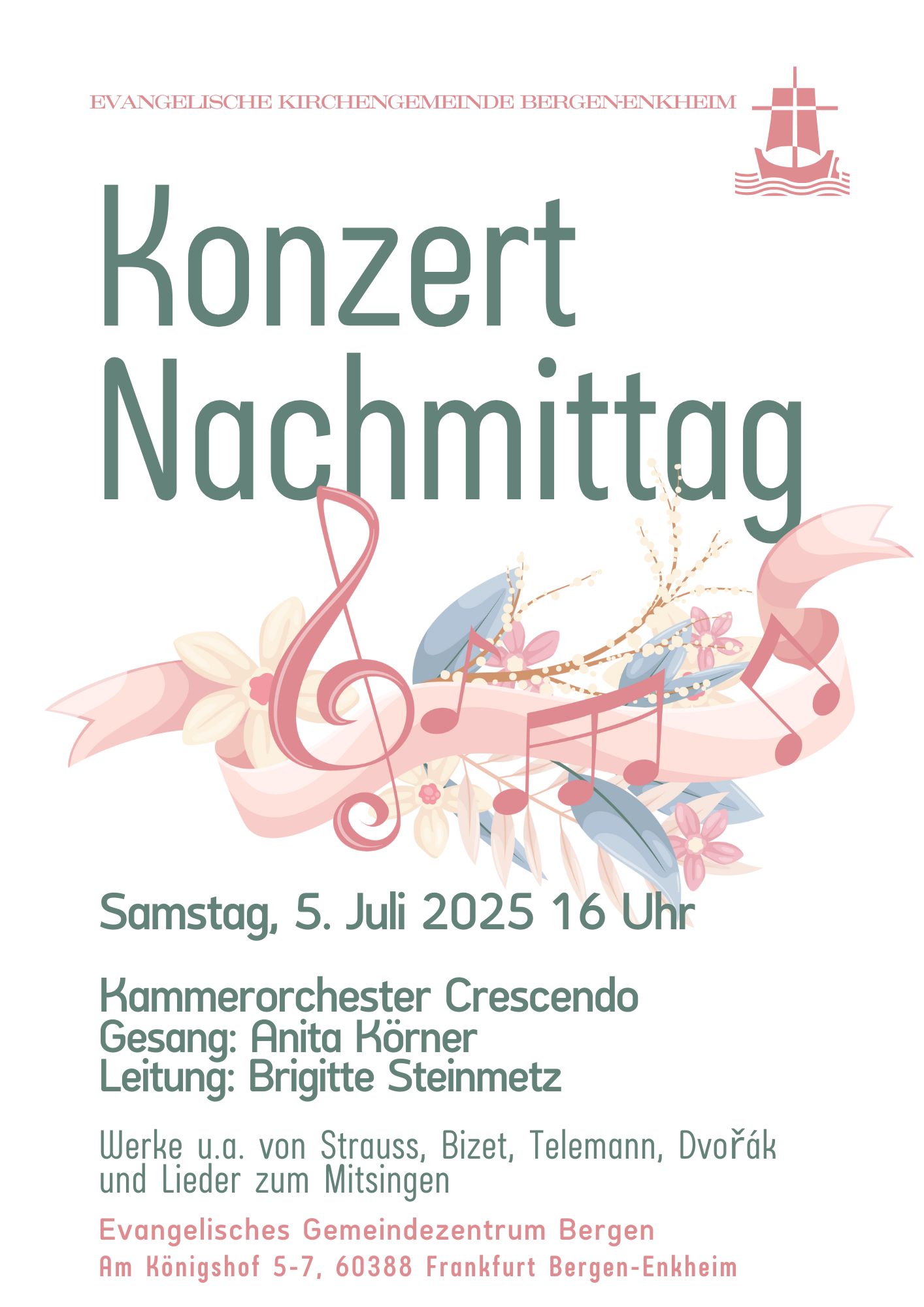 Herzliche Einladung zum Konzertnachmittag im Gemeindezentrum Bergen am 5. Juli 2025 um 16.00 Uhr