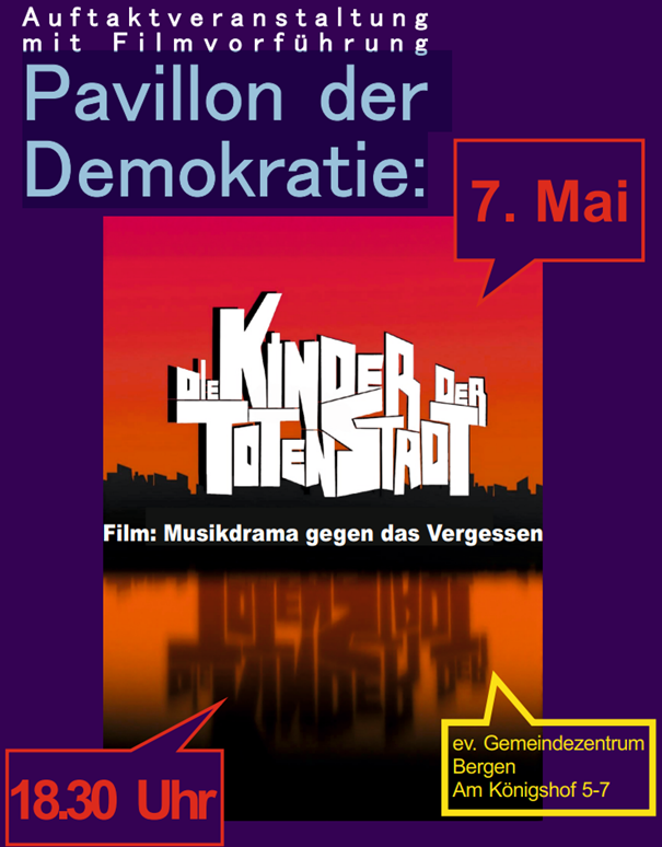 Wir freuen uns sehr, den Film „Die Kinder der toten Stadt“, ein Musikdrama gegen das Vergessen, das im Papageno- Musiktheater entstanden ist, als Auftaktveranstaltung zum Pavillon der Demokratie am Mittwoch, 7. Mai, um 18:30 Uhr Gemeindezentrum zeigen zu können.