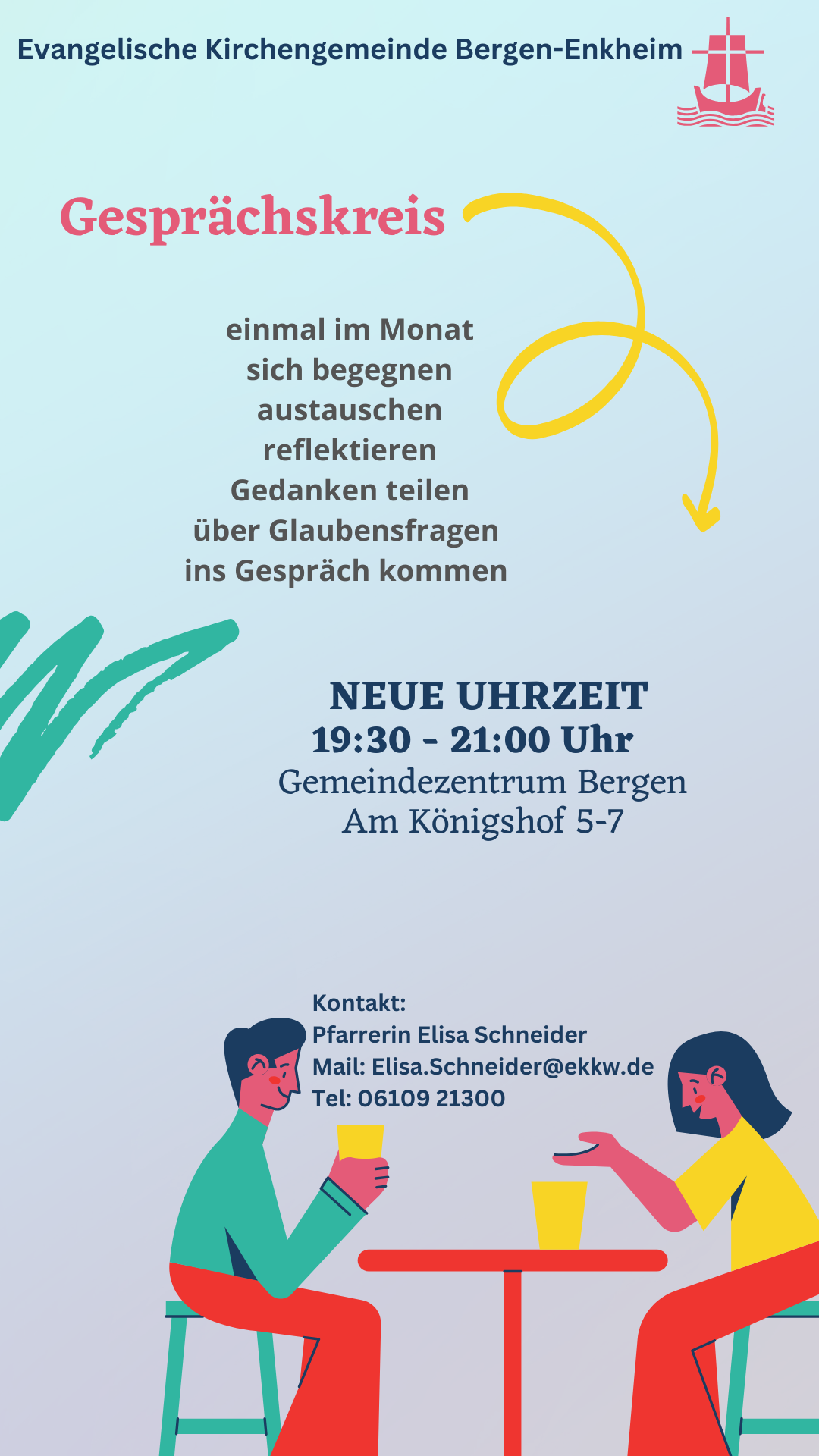um ungezwungen miteinander über Glaubensfragen und aktuelle Themen ins Gespräch zu kommen. Schauen Sie gerne einfach vorbei!