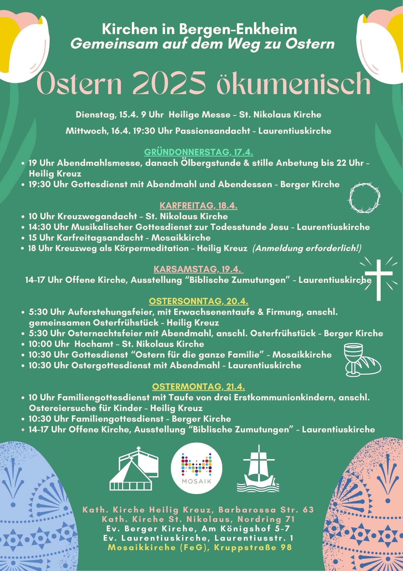 Die Kirchen in Bergen-Enkheim laden 2025 wieder gemeinsam zu den Gottesdiensten in der Karwoche und an Ostern ein.