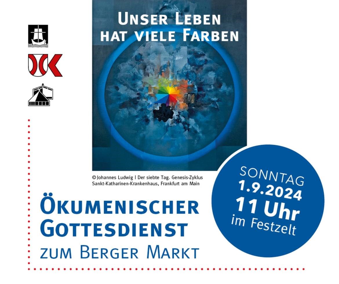 Herzliche Einladung zum ökumenischen Gottesdienst anlässlich des Berger Markts am Sonntag, 1. September um 11 Uhr im Festzelt auf dem Berger Marktplatz zum Thema "Unser Leben hat viele Farben".